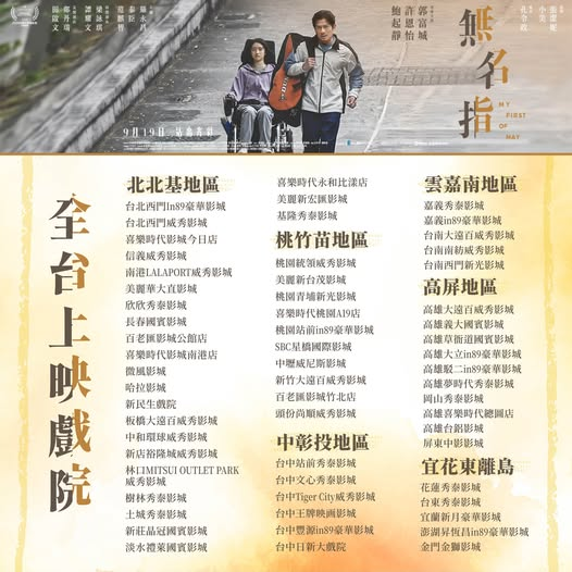 繼本會於 09/09 受邀參與公益搶先看場次後,感動人心的香港電影《無名指》獲得熱烈迴響,許多未來得及參與的朋友紛紛敲碗。為此,我們特別選在教師節連假前進行台北包場,邀請大家一同觀賞這部感人熱淚的優質 ...