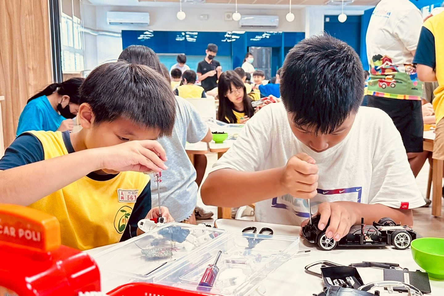 與「台灣玩具圖書館」團隊合作,透過共享玩具資源與引導式活動,引導學生從實際操作與互動中學習。台灣玩具圖書館以圖書館概念管理玩具資源,透過回收、整理與再利用二手玩具,建立可重複使用的教學與共玩系統,並將玩具作為促進探索、合作與學習的教育媒介。