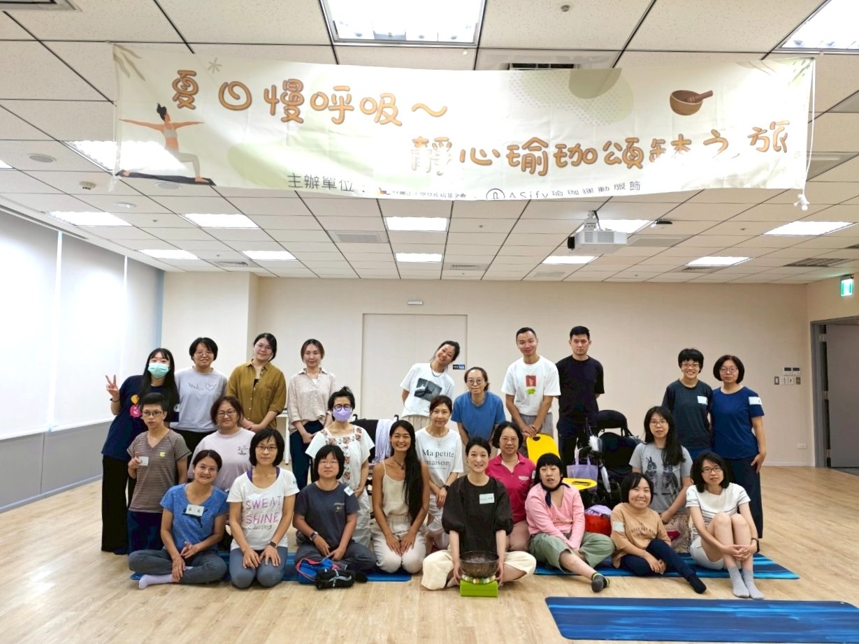 To help patients and their families ease the burdens of illness and stress, the Taiwan Foundation for Rare Disorders (TFRD) partnered with ASify Yoga Apparel to host “Summer Slow Breath: A Mindful Yoga and Singing Bowl Journey.” The program took place every Sunday morning from June 29 to August 1 at the Taipei Bio-Medicine Park, drawing nearly 30 enthusiastic participants from patient and family groups.