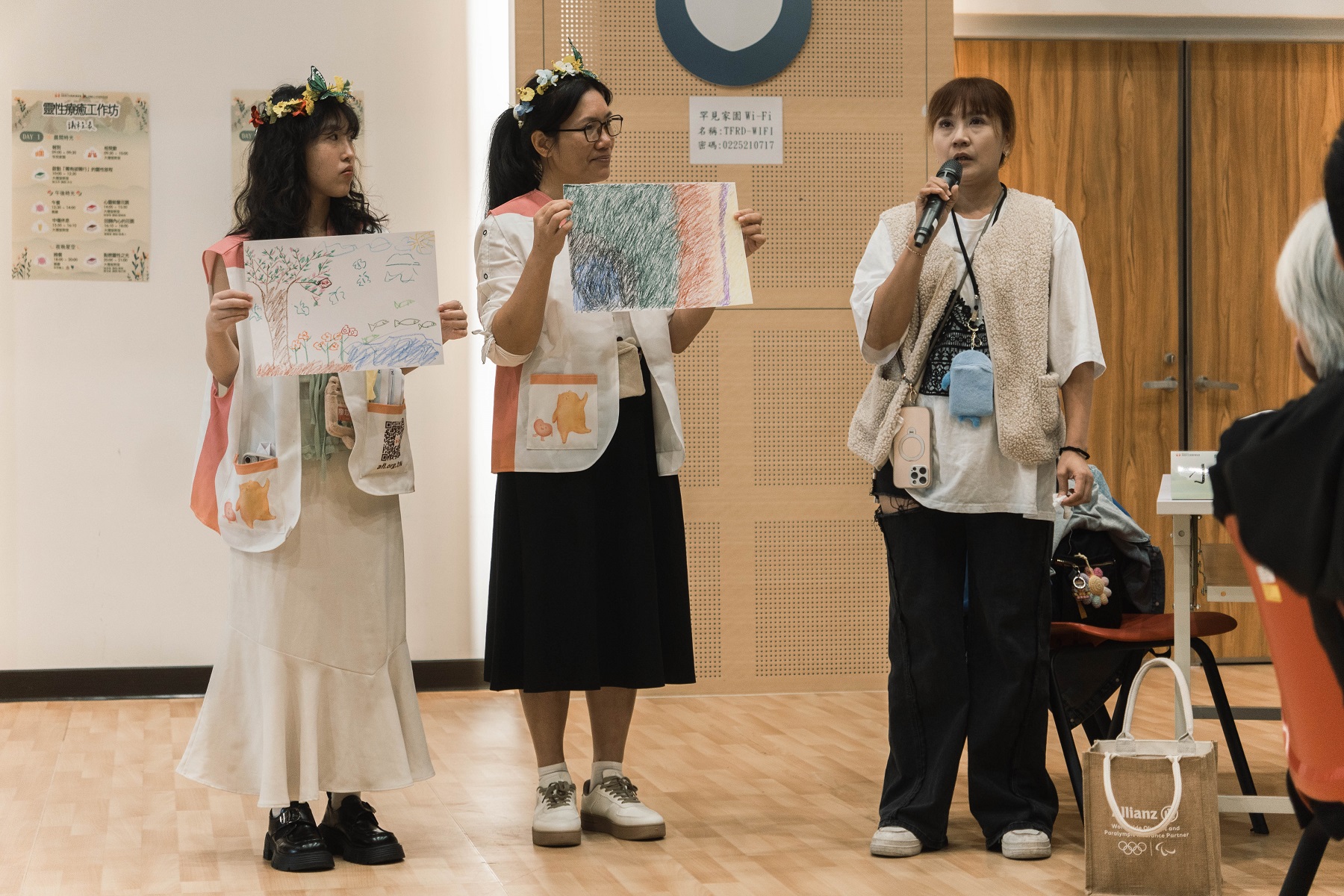 Her session, which incorporated reflective cards, invited participants to explore “my relationship with this caregiving journey.” Some drew images of withered trees, reflecting how long they had been weighed down by unrelenting challenges. Others received cards that prompted them to confront how they had gradually lost the ability to care for themselves - or for others - as they once had. Ms. Hsu then guided everyone through a hands-on floral therapy activity, helping each person create an arrangement symbolizing healing and new beginnings.