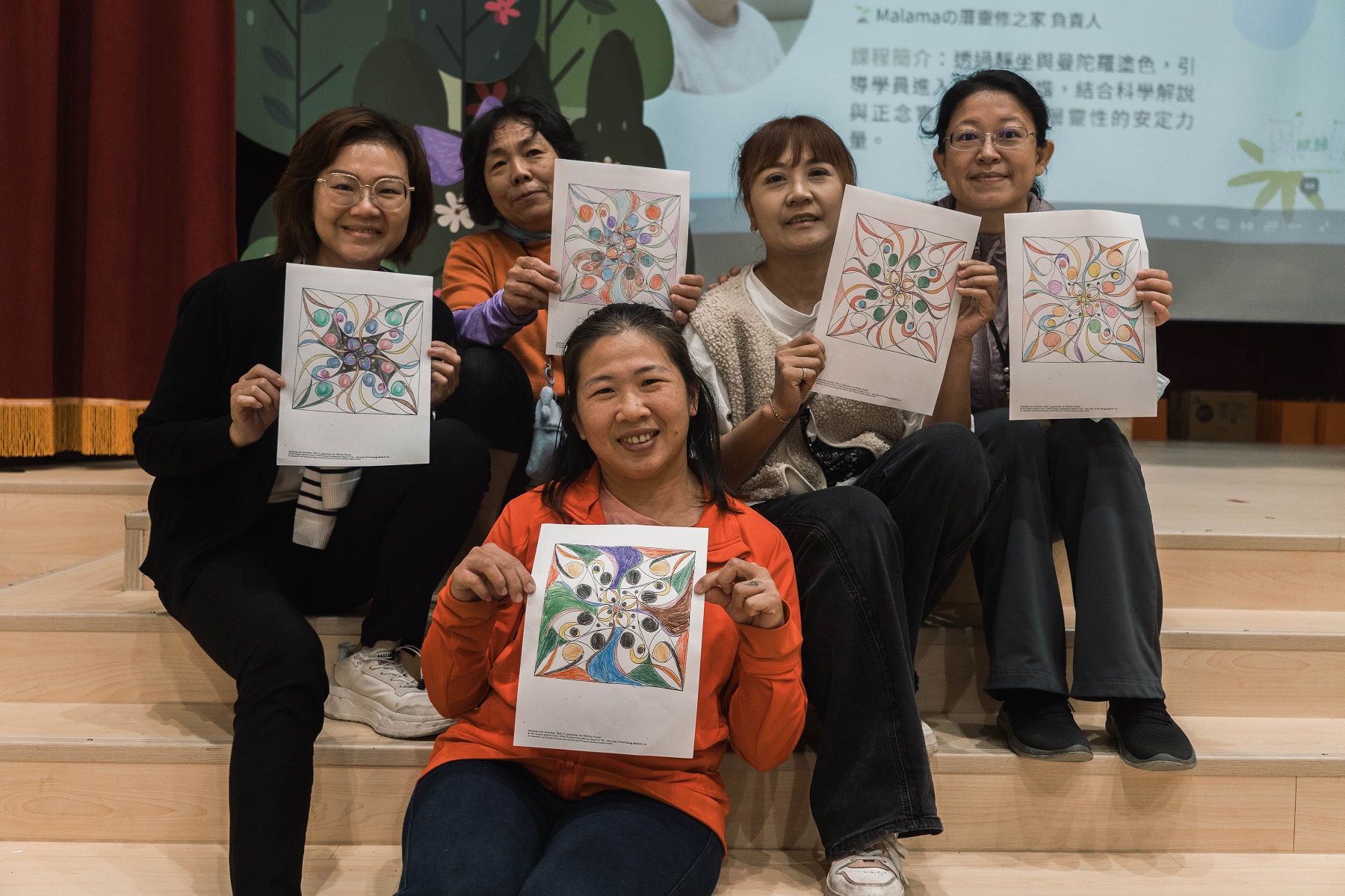 In the afternoon, Associate Professor Shu-Ching Hu invited the participants into a “Garden of Inner Energy,” using songs to guide them in finding ways to recharge and reconnect with their inner resources and strength. As the music unfolded, people naturally began to hum along, and the room gradually filled with sharing and gentle interaction. This was followed by a quiet meditation led by Instructor Pao-Kuei Yeh, who softly guided everyone into stillness before transitioning into a mandala coloring activity. The calm, rhythmic act of coloring helped many participants unknowingly set aside the burdens and worries of caregiving, even if only for a short while.