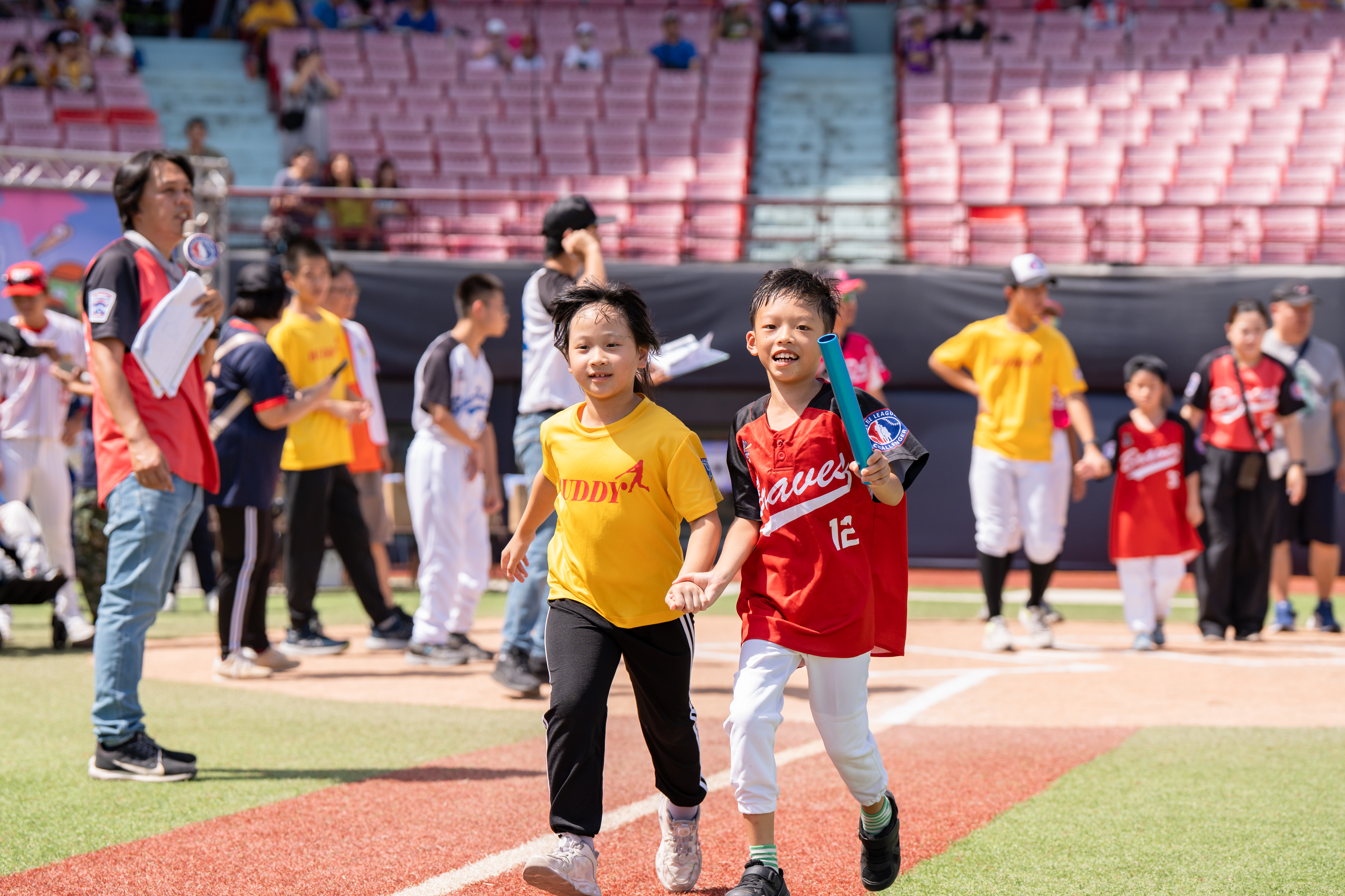On Saturday, October 11, the Challenger Cup baseball tournament for children and youth with disabilities took center stage at Taipei's Tianmu Baseball Stadium. This year's event, themed “BUDDY Together, Unlimited Love,” emphasized the spirit of sportsmanship as well as the love and support demonstrated in overcoming obstacles. Featuring athletes aged 4 to 18 with disabilities, the tournament drew enthusiastic participation from all sectors. Notably, two-time Olympic badminton gold medalist and current Minister of Sports Li Yang graced the event with his presence, offering tremendous encouragement to the athletes. Farglory Foundation CEO Yang Shun-chin expressed hopes to host an official tournament at the Taipei Dome by the event's tenth anniversary, drawing enthusiastic cheers from the crowd.