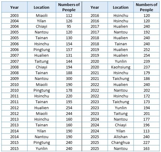 From 2003 to 2025, a total of 48 events were held with a total of 9,109 participants.