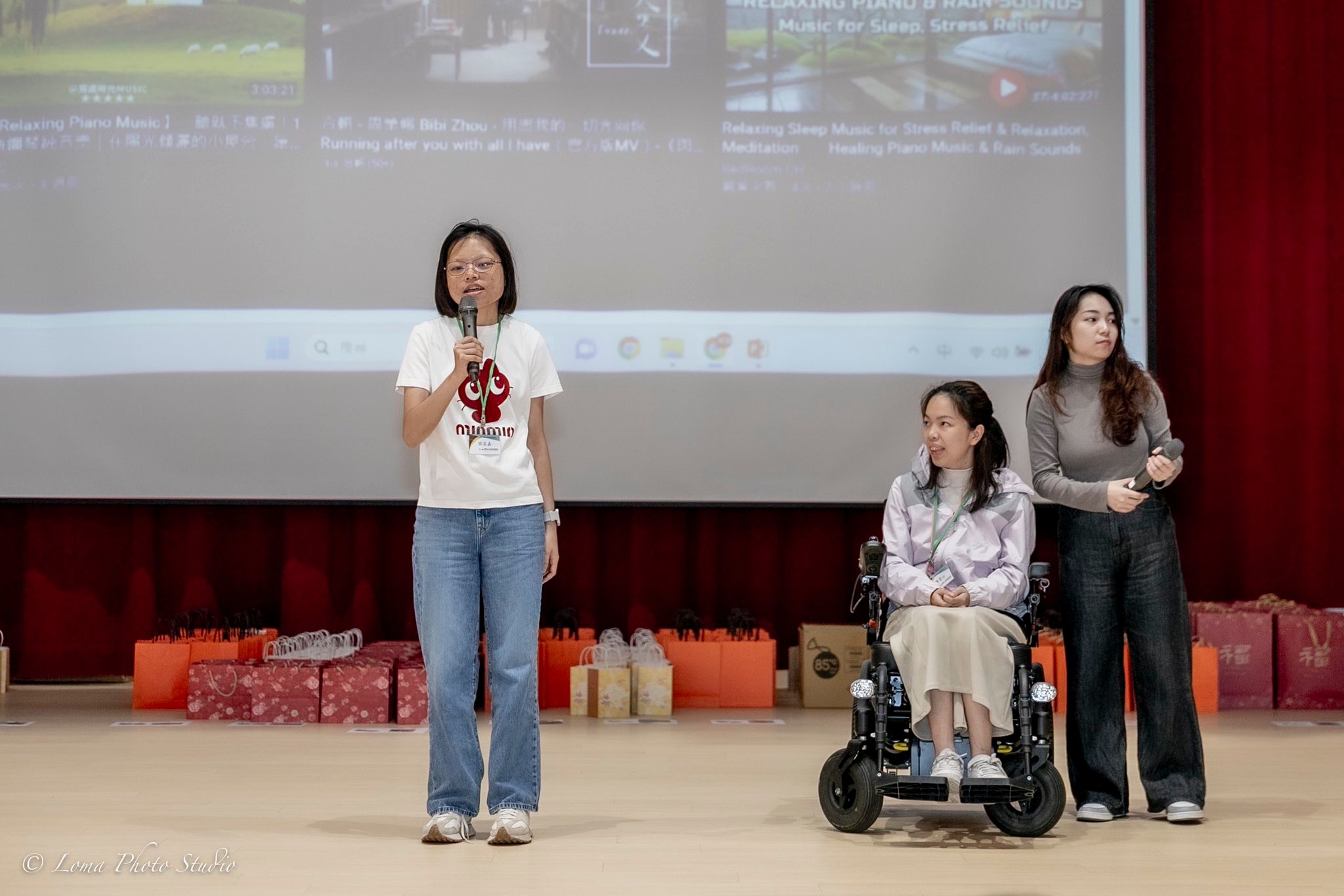 大家來到家園後,首先是感謝狀頒發以及愛心捐贈儀式,孟淑芬總監在致詞時特別指出:她對於家園的基因教育中心的設備規劃非常有興趣,也覺得這樣的環境除了適合身障者前來接受各項服務外,藉由基因教育宣導及病友各項生活的實際體驗,確實能讓小朋友更加認識罕病病友的樣貌,是一個相當完整兼具病友服務及教育宣導的中心。至於李廷蘭專區主席則是提到:當初聽到基金會介紹到家園的時候就覺得很心動,今天能夠結合八個獅子會一同來進行社服工作並與病友進行互動,希望大家都能有滿滿的收穫。基金會也感謝大家的善心支持,共捐出24萬元的善款,藉此幫助更多罕病家庭所需。