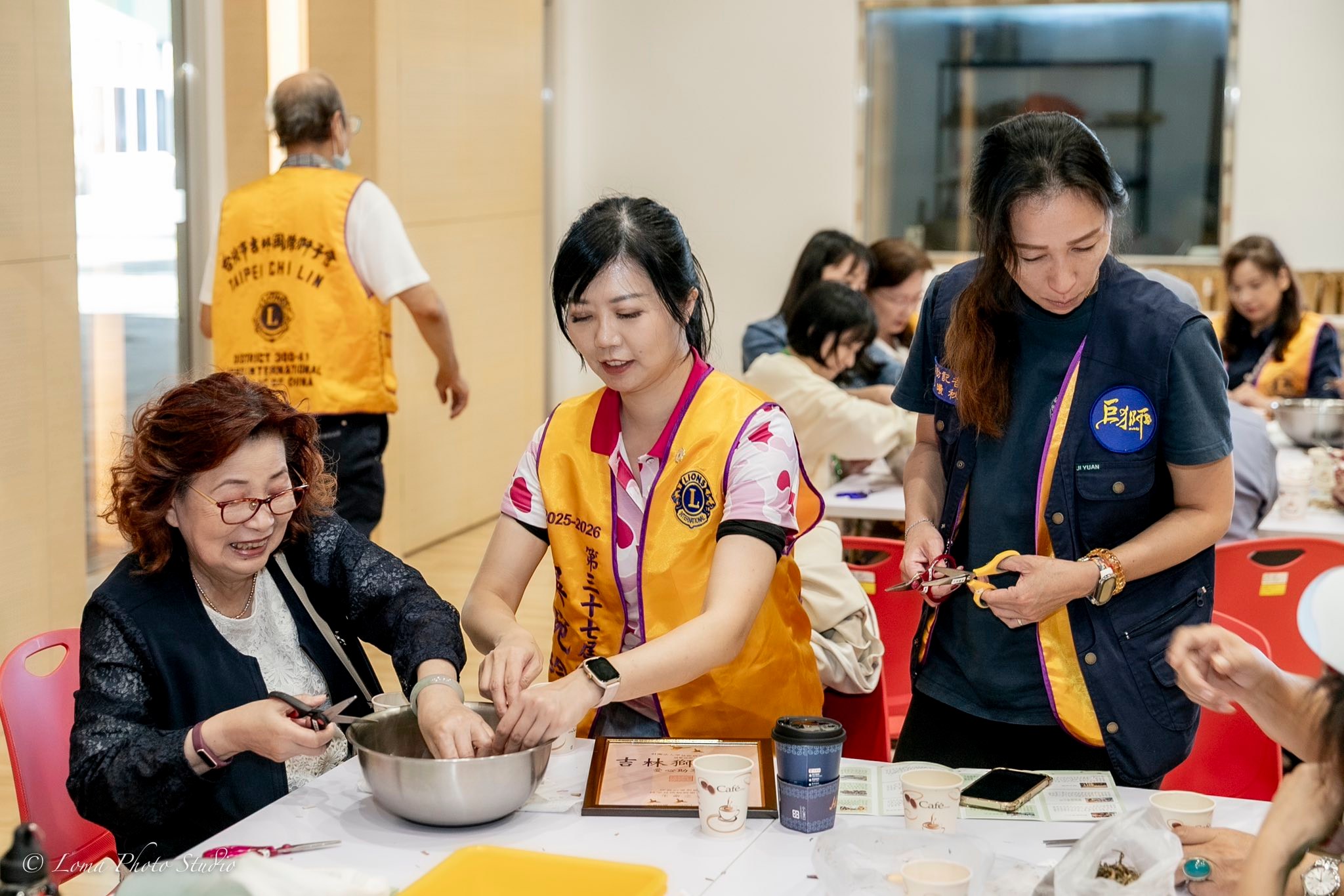 隨著在家園邊走邊看的導覽過程中,獅友們從中感受到罕病病友們的生活,從時光空間中了解基金會的歷史、基因教育中心認識罕見疾病再到福祉沐浴示範中心看看身障者們可以如何使用特別的輔具洗澡,還有著許多空間讓病友們上各式各樣的課程,並看到家園整體無障礙環境的規劃,都感受到基金會的對病友的用心之處。緊接著DIY的時間,這次邀請了帶領悠活團體的子軒心理師來帶大家體驗「香草槌棒」的製作,悠活團體是個透過專業心理師及物理治療師的帶領,陪伴病友們找到內在自我的安放之處的課程,在香草槌棒DIY的過程中,每一組的獅兄獅姊都與身旁的病友們聊天交流,在圍繞著各式香草香味的教室中伴隨著大家的歡笑聲,讓整個空間都充斥著溫馨的氛圍。