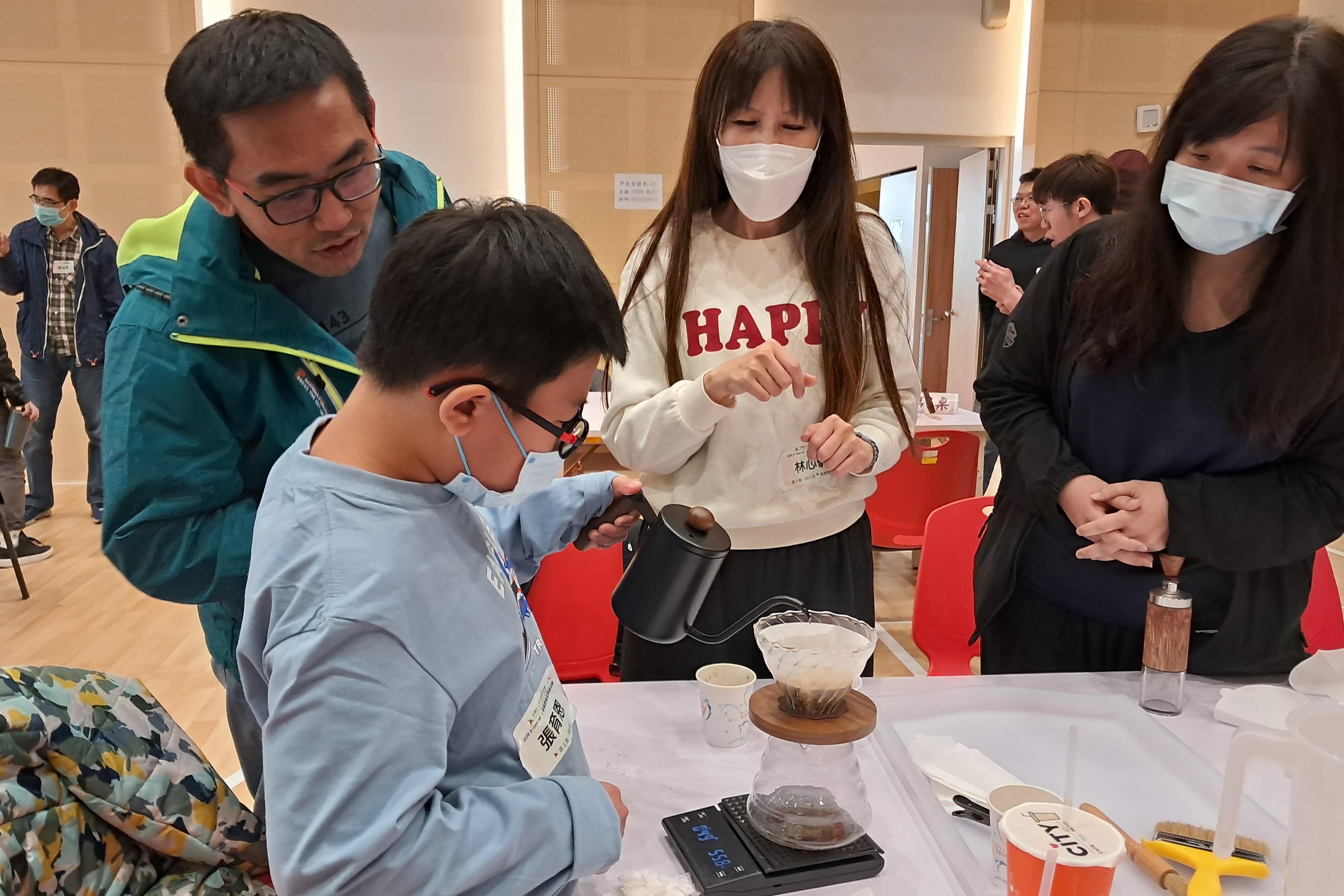 接下來罕病職人DIY體驗課程登場,由大家所熟悉的迪喬咖啡也是DiGeorge's症候群病友家長林心儀,帶領大家從認識原豆、磨豆、計算比例、注水方式,完成清香順口的手沖咖啡,正好午後來杯咖啡提神,享受難得的下午悠閒時光。緊接著是Alstrom氏症候群的病友家長嘉珍,帶領大家親手縫製,內含桂花與艾草的好運桂花香粽鑰匙圈,媽媽們很快掌握藏針法要領、香包完成度很高,最後再將鑰匙圈的皮革拓印上圖案,整個下午就在愉快放鬆的氛圍中度過。