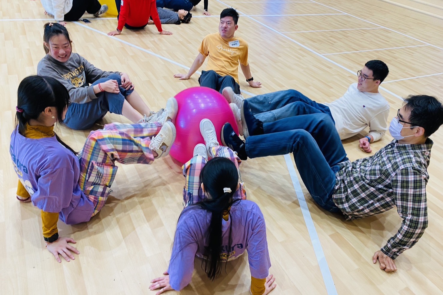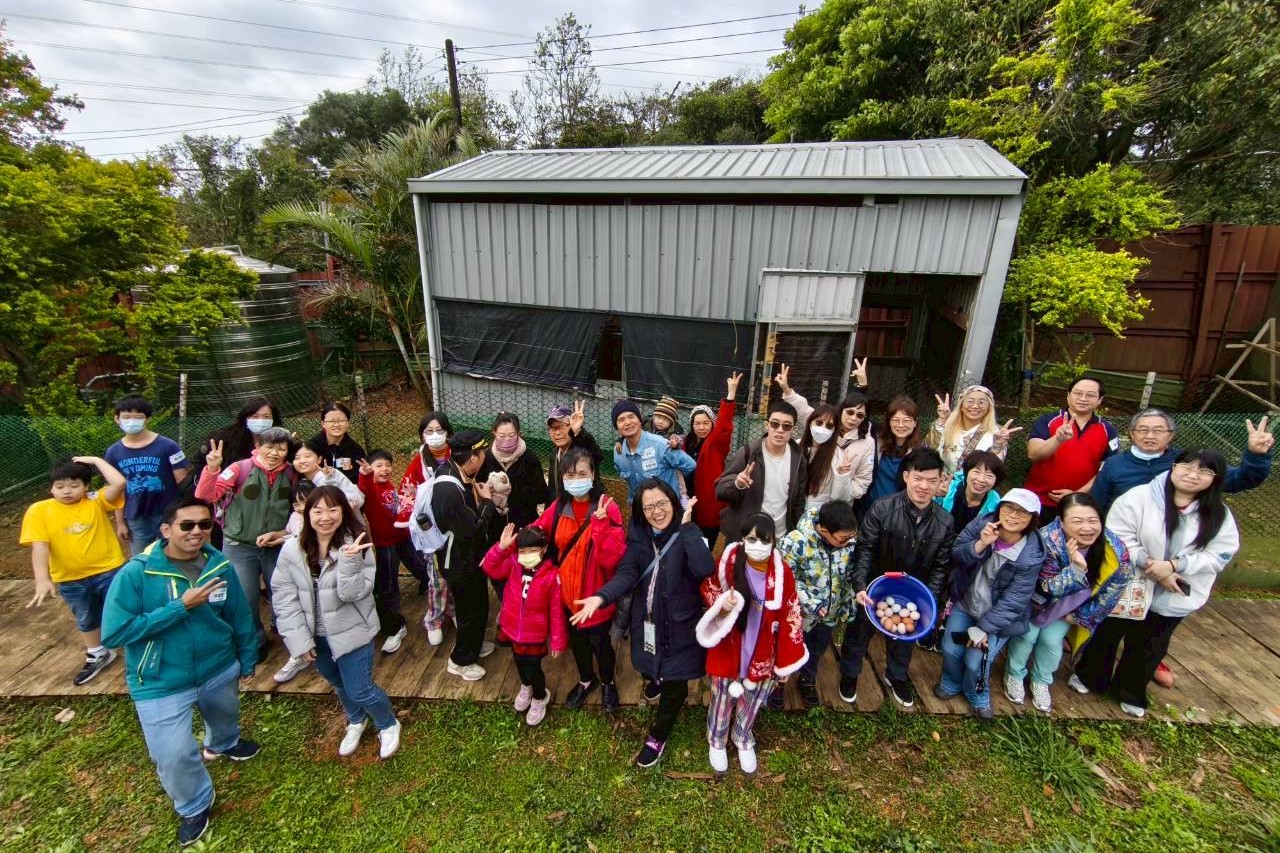 隔天一早則是進行家園巡禮,第一站雞舍體驗餵雞、撿新鮮的雞蛋,與雞隻互動經驗,新鮮感十足。第二站來到基因教育中心和福祉設備服務中心參觀傳說中的沐浴設備,深感基金會的用心,讓行動不便的病友,讓舒服泡澡變得不再遙不可及。接著由彩虹家族的企鵝老師帶領,藉由瑜珈球與遊戲競賽,讓大家盡情舒展僵硬的身體,經歷兩個小時活動,大家雖然滿頭大汗,仍是活力不減。中午則是一起享用完美味披薩後,下午來到金勇番茄農場體驗客家擂茶和搗麻糬,家人們一起親手採摘番茄、草莓。藉由兩天活動參與,大家都帶著滿滿的正能量、互相鼓勵期待再相會。